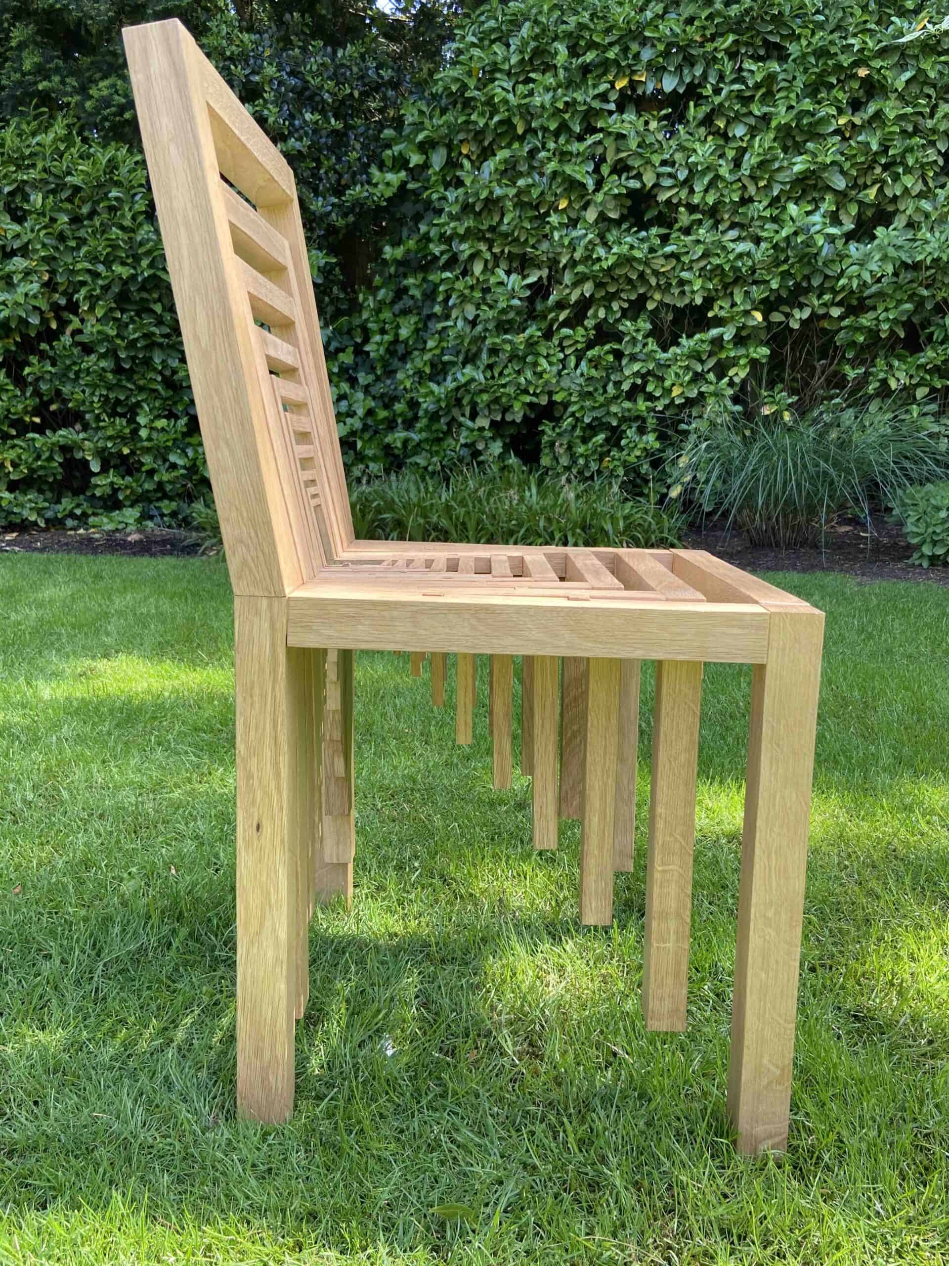Ik vind het heel leuk om zelf dingen te maken. En FIRE (Financial Independence Retire Early) geeft me de tijd en energie ervoor. Het door de coronacrisis noodgedwongen vele thuis zijn heb ik aangegrepen om mezelf te leren werken met een tafelzaag. Ik heb een stoel gemaakt die een optische illusie opwekt.